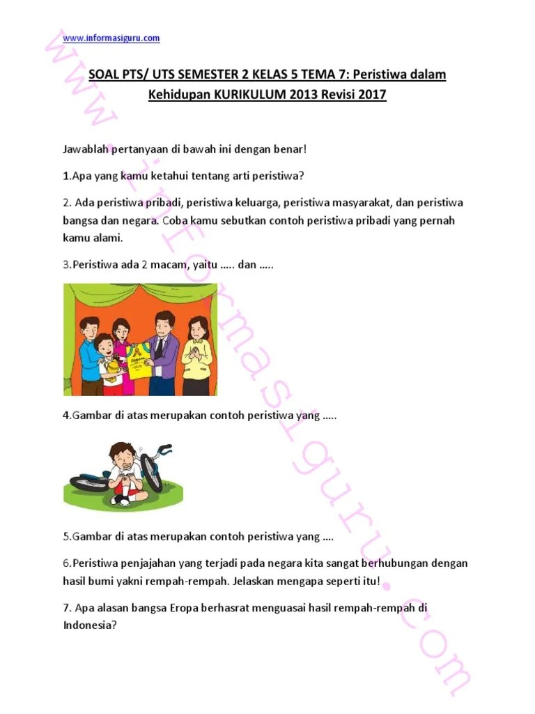 Untuk contoh latihan soal harian tema 7 kelas 5 subtema 3 peristiwa dalam kehidupan sd/mi kali ini berbentuk uraian.